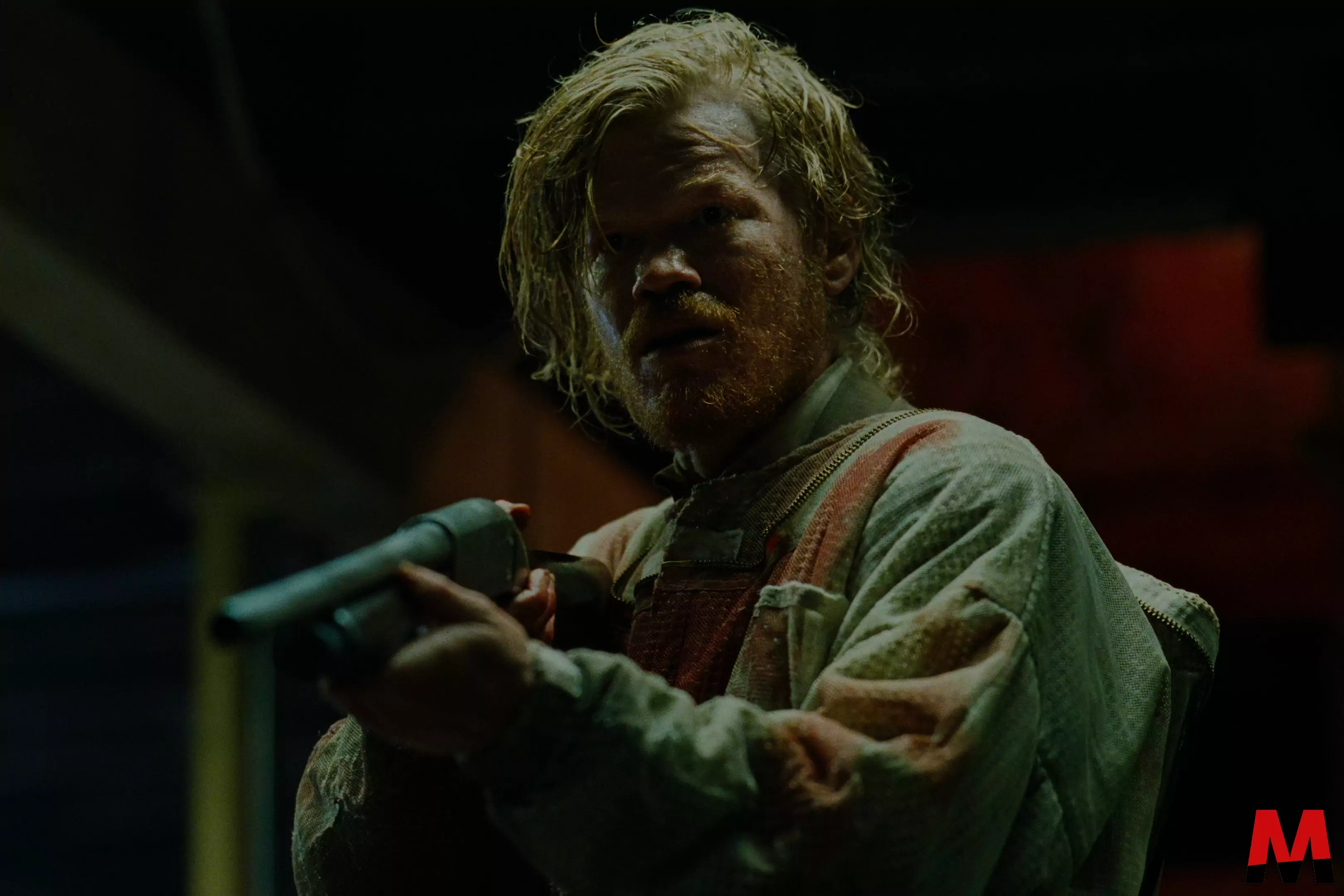 Was zuerst erwähnt werden sollte ist, dass der Film im Heimkino wie schon auf der großen Leinwand im stilistischen Bildformat 3:2 ausgegeben wird. Dementsprechend gibt es am linken und rechten Bildrand dicke Balken. Ein wenig gewöhnungsbedürftig, aber es untermalt den klaustrophobischen Kammerspielcharakter des Films exzellent. Die dazugehörige Blu-Ray kann sich bereits absolut sehen lassen und löst sowohl in Nahaufnahmen wie auch in Halbtotalen sehr gut auf. Manche Shots gehen gar in Richtung Referenzmaterial, andere fallen dagegen herstellungsbedingt eher soft aus. Wo Jesse Plemons Haar anfänglich den Eindruck erwecken lässt, dass hier nachgefiltert worden sein könnte, würde ich doch eher sagen, dass seine Rolle einfach extrem ölige Haare hat. Farblich dominieren erdige Paletten mit hoher Sättigung. Während Außenaufnahmen eher Richtung Grün tendieren, gibt es innerhalb des Hauses eine krasse Verschiebung ins Gelb-Orange.