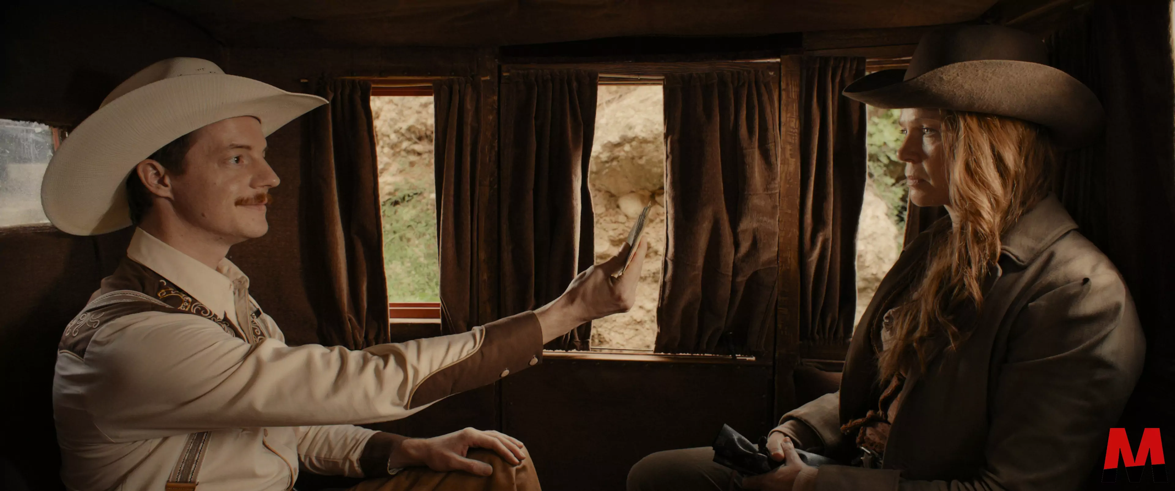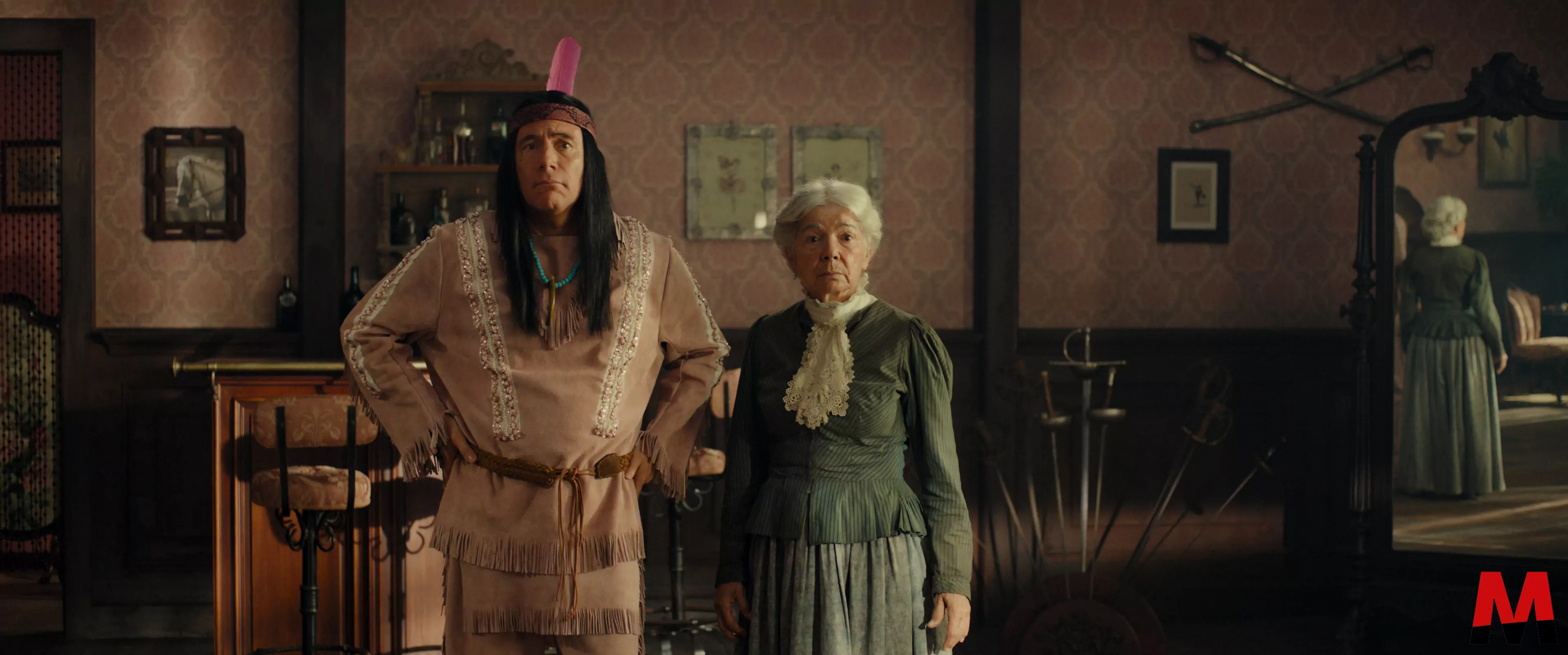 Farblich dominierend passend zum Setting erdige Paletten, vor allem in den Außenaufnahmen sind Gelb- und Brauntöne dauerhaft präsent, während in dunkleren Einstellungen und Innenaufnahmen eher Grün bestimmend ist. Allerdings kann die Blu-Ray nur selten wirklich gut differenzieren, so dass eben auch Gesichter und Co. sehr von den Paletten eingenommen werden, was keineswegs gesund aussieht. Farbliche Highlights wie die pinken Klamotten von Winnetouch oder die blauen Uniformen der Musketiere gehen dabei leider etwas unter. Gleichzeitig wäre es ratsamer gewesen, mit der ARRI Alexa 35 zu drehen, womit sich ein wesentlich authentischer Look hätte erzielen lassen. So wirkt das digitale Bild durchgehend zu sauber, um gänzlich glaubhaft zu wirken. Dafür sieht es bei den Schwarzanteilen sehr gut aus. Ja, insgesamt ist das Meckern auf hohem Niveau, aber trotzdem berechtigte Kritik.