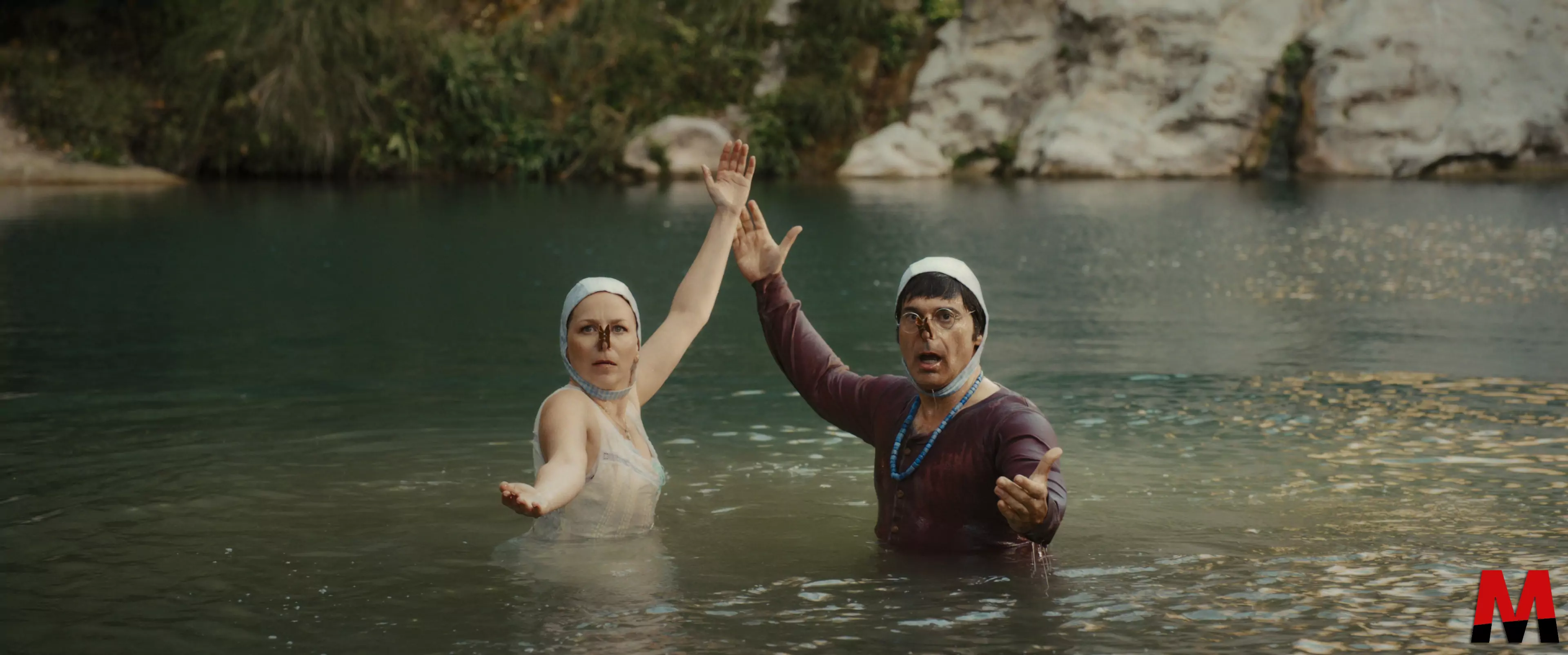 Nun sind wir gesellschaftlich aber mittlerweile seit geraumer Zeit an dem traurigen Punkt angelangt, wo man sich nicht mehr die Frage stellt, wann es eine echte Fortsetzung gibt, sondern ob man die überhaupt noch drehen darf. „Die Comedy-Polizei ist so streng geworden“, dass der Dreh einer Komödie viel schwieriger geworden sei, „weil man das Gefühl hat, dass man sehr schnell Leuten auf die Füße tritt“ – so Herbig dereinst selbst in der Talkshow 3 nach 9. Dementsprechend mussten sich die drei Hauptdarsteller bei der Ideenfindung Mittel und Wege einfallen lassen, der zu erwartenden Moralkeule aus dem wohlstandverwahrlosten Kulturkämpfermilieu effektiv zu begegnen, dem ja mittlerweile schon bei der Nennung des Wortes „Indianer“ nervös die Nasenringe flattern. Das gelingt dem Film dann tatsächlich auch auf eine sehr intelligente und gleichzeitig gut gemachte Passage zum Schluss.