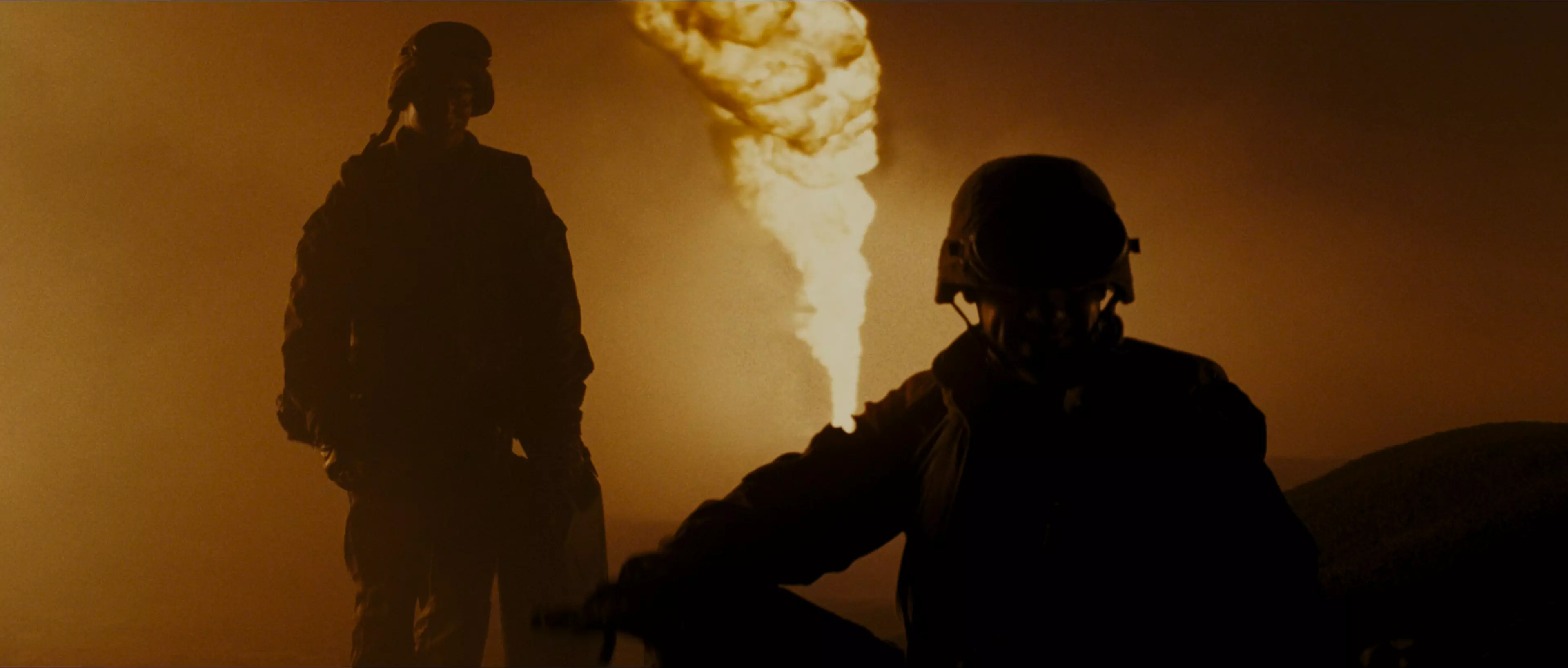 Jarhead – Willkommen im Dreck wurde in der Spätphase der durchgehend analogen Filmherstellung noch ganz klassisch auf 35mm gedreht. Mit der Veröffentlichung des wegweisenden und weltweit gefeierten Der Soldat James Ryan etablierte sich scheinbar die Regel, dass Antikriegsfilme prinzipiell keine Farben zeigen dürfen und der Bildingenieur bei der Abmischung völlig frei am Kontrastregler drehen darf. Dementsprechend entsättigt und mit harschen Flanken versehen präsentieren sich die Paletten auch hier – und das teilweise so krass, dass man den Eindruck gewinnen möchte, der Film wäre spätestens mit dem Eintreffen in der Wüste komplett in Sepia-Optik getaucht. Das ist stilistisch eben so gewollt und muss entsprechend bewertet werden.