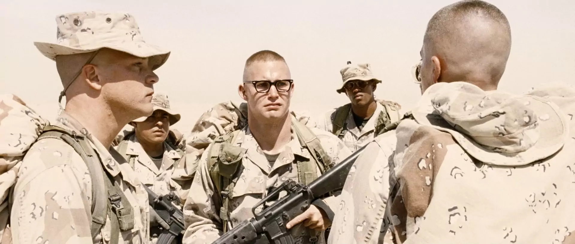 Lose basierend auf dem gleichnamigen Buch von Anthony Swofford, versteht sich der zwei Jahre nach dem offiziellen Ende des Irak-Krieges von Sam Mendes inszenierte Jarhead – Willkommen im Dreck als psychologische Studie über junge Soldaten, die im Angesicht des Nichtstuns allmählich zusammenbrechen. Der titelgebende Begriff leitet sich dabei von der typischen Kurzhaarfrisur der Marines ab, beschreibt aber ebenso einen leicht manipulierbaren Menschen. Dass die von den Vorgesetzen eingehämmerten Ideale der Realität kaum standhalten können, ist ein zentraler Aspekt des Films. Keiner der Männer kämpft aus Überzeugung, stattdessen dominieren Alltagssorgen die täglichen Gedanken. Testosteron wird zum Erzfeind ereignisloser Tage, an denen die Genusswurzel vor Langeweile längst wundgeschrubbt worden ist.