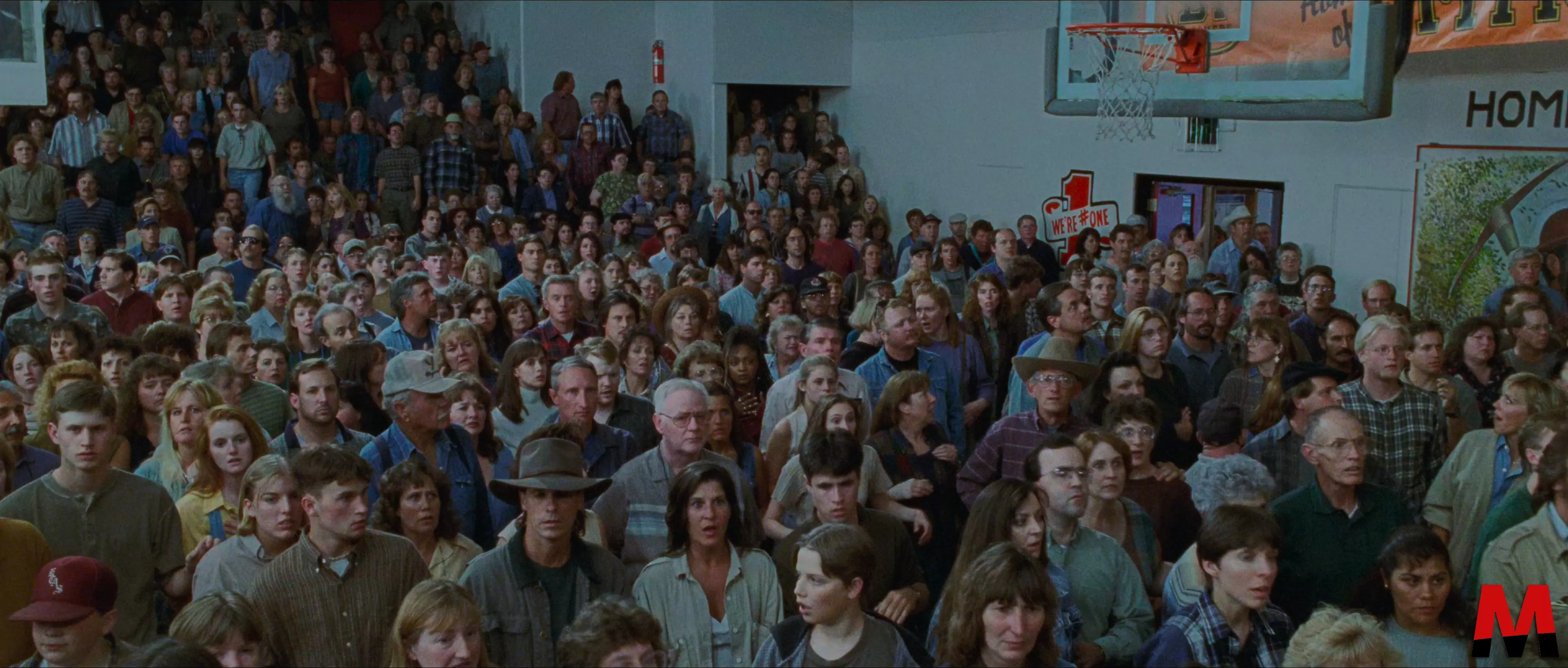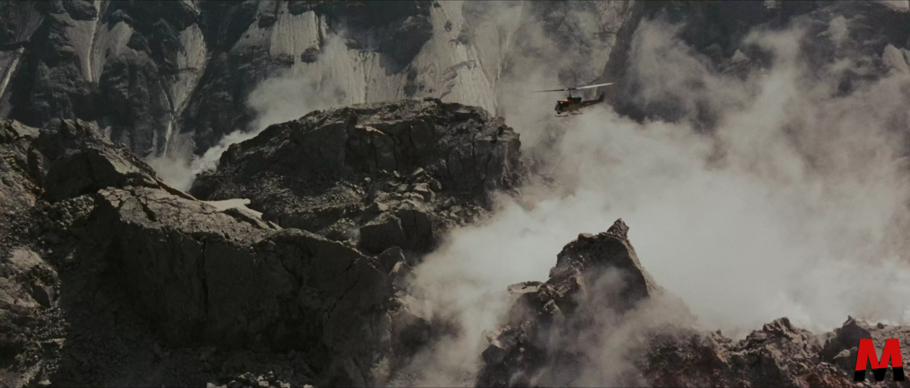 Begleitet wird all das von einem komplett neuen Grading mit überwiegend warmen Paletten, welches nur noch unaufdringlich ins Gelb-Grün tendiert und damit den ursprünglichen Look eines Neunziger-Jahre-Films gelungen wiederherstellt. Die Differenzierung ist hier bereits sehr gut. Zwar wird’s mit dem Ausbruch des Vulkans auch hier zunehmend farbärmer, das ist aber stilistisch so gewollt und von der Blu-Ray Remastered auf eine Weise umgesetzt, die man als untermalendes Element positiv aufnehmen kann, anstatt wie noch im Rahmen der Erstauflage verwirrt an der Fernbedienung herumzufummeln. Obendrauf liefert die Scheibe kräftiges Schwarz und zeichnet auch in dunklen Szenen gut durch, während neutrale Flächen nicht mehr unschön eingefärbt werden. Kurzum: Ein himmelweiter Unterschied, an dem man sich gar nicht genug sattsehen kann.