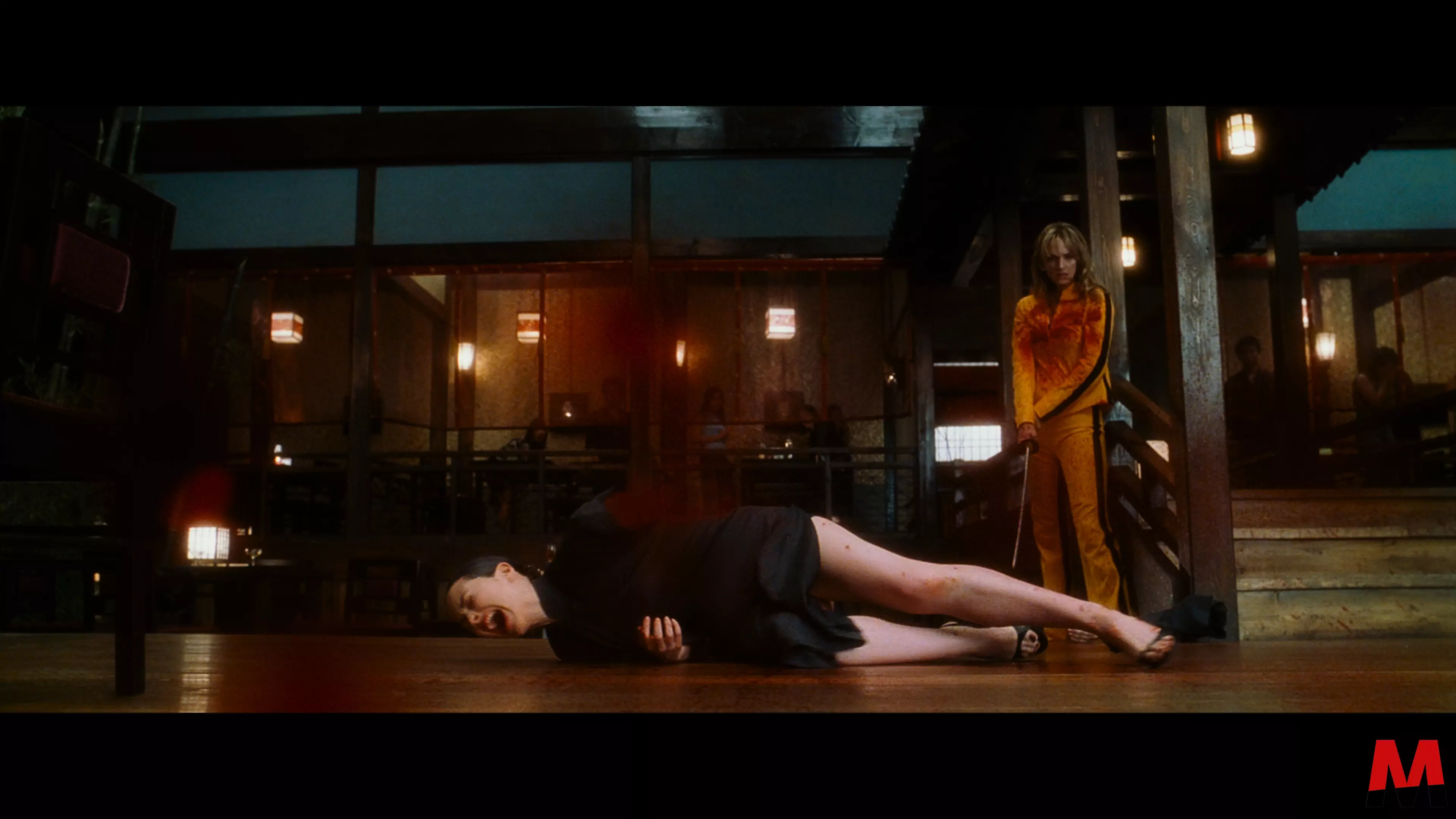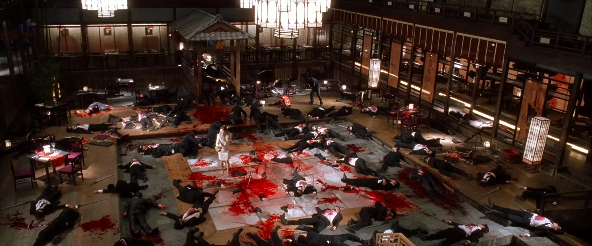 Die monatelange Vorbereitungen in Sachen Sprache, Kampfsport und Waffenhandhabung tragen immens zur Glaubwürdigkeit der hier zentralen Figuren bei, denen gleichzeitig eine nachvollziehbare Verletzlichkeit innewohnt, die das ganze Spektakel zwischendurch immer wieder erdet. Maßgeblich dazu beigetragen haben dürfte auch die Tatsache, dass Thurman kurz zuvor selbst erneut Mutter geworden war. Gefühle, die in die emotionaleren Momente des Films ganz sicher eingeflossen sind. Bei allem, was den Film ausmacht, bleibt den allermeisten Fans trotzdem am ehesten der kultige Showdown im Haus der Blauen Blätter in Erinnerung. Dieser extrem blutige und lange Klimax kann nur als Meisterstück des Kinos bezeichnet werden. Choreographiert von niemand geringerem als dem legendären Yuen-Woo Ping, der sein Können bereits bei Matrix eindrucksvoll unter Beweis gestellt hat, fusionieren hier Elemente des klassisch-chinesischen Wuxia-Genres mit dem traditionell-japanischen Jidai-geki zu den Klängen lateinamerikanischer Rhythmen.