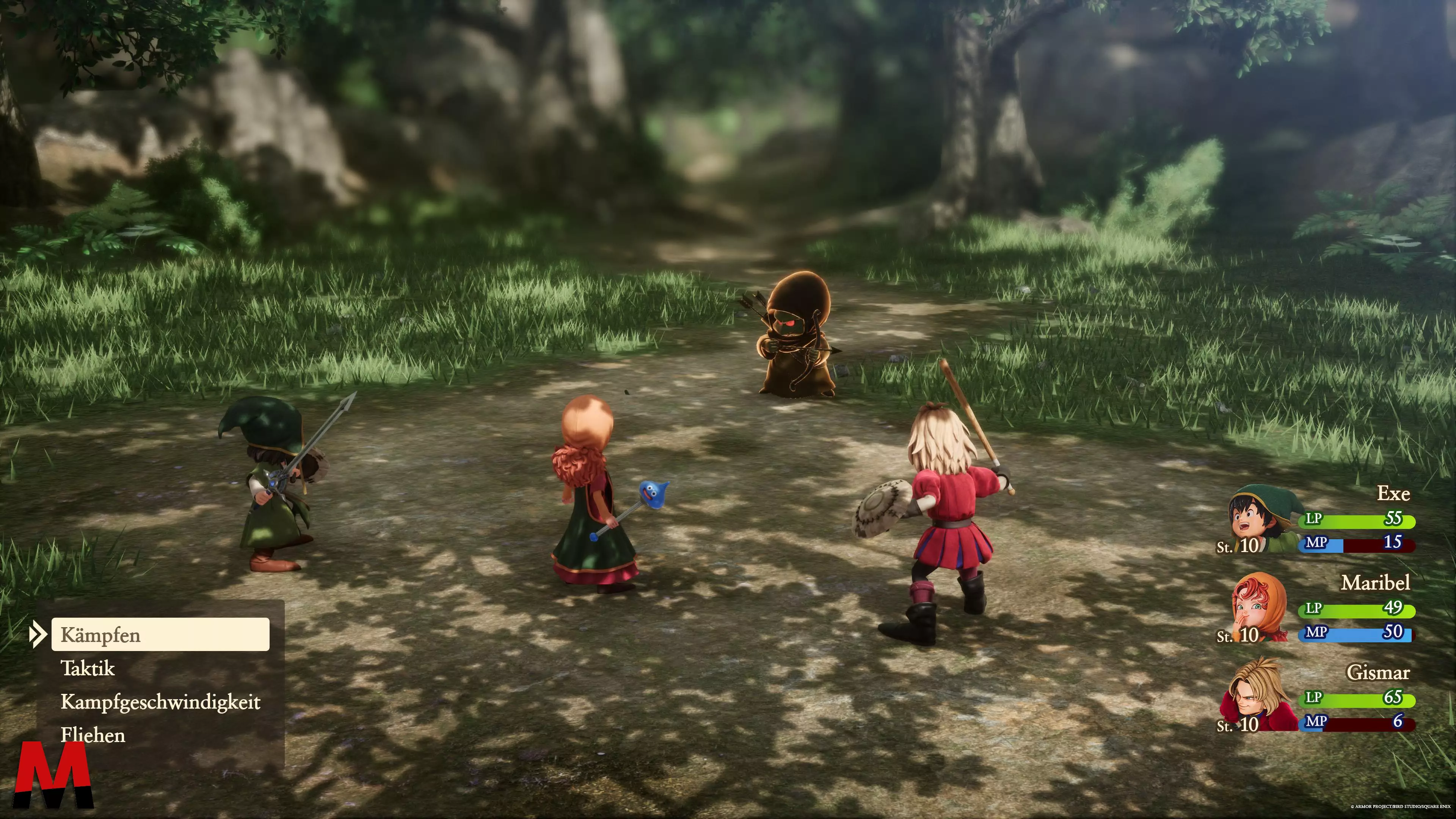 Das beinhaltet den üblichen Mischmasch aus Dialog- und Volltextpassagen, den chronisch schweigsamen Protagonisten und eine arg vertraute Rollenverteilung der jeweiligen Charaktere. Auch die Handlung entwickelt sich eben so, wie man es von den meisten älteren Genrevertretern gewohnt ist – das gilt umso mehr, wenn man schon einmal ein Dragon Quest gespielt hat. Die rundenbasierten Kämpfe funktionieren ebenfalls nach ganz klassischem Prinzip. Später schalten wir noch ein Berufssystem frei, mit dem wir unsere Helden neuen Professionen zuführen können. All das wird von einem klassischen Stufensystem begleitet. Und so funktionell das in der Summe – auch aufgrund der im Vergleich zum Original dramatisch entschlackten Menüs – sein mag: Nichts von alledem fühlt sich zu irgendeinem Zeitpunkt richtig frisch an.