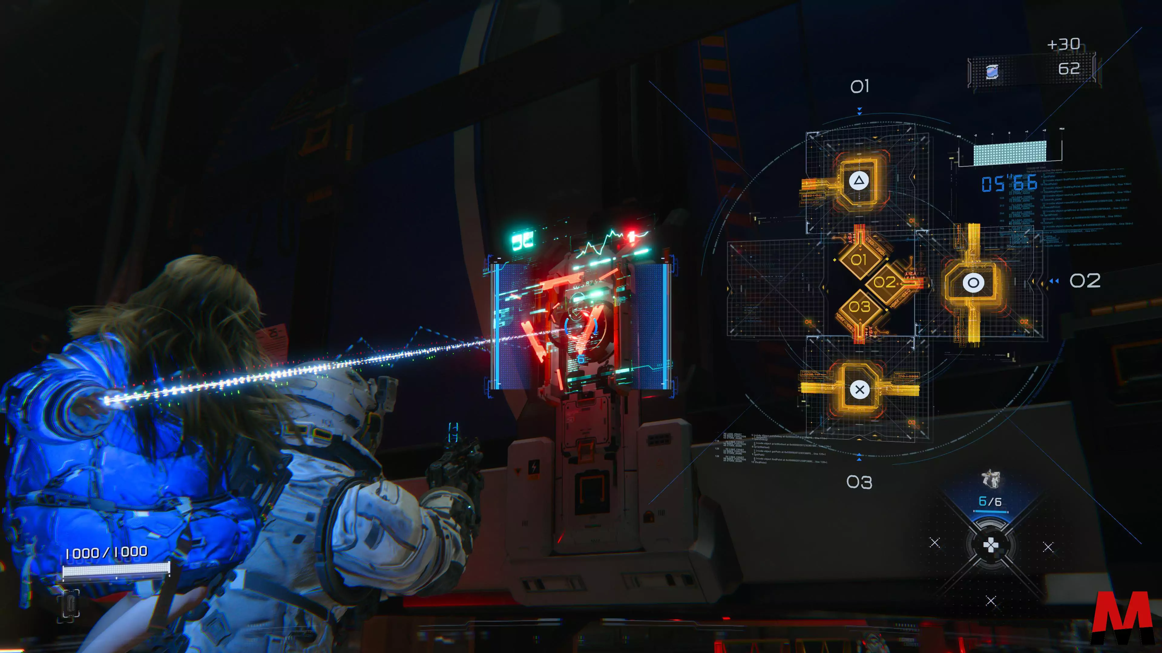 Kreativ verantwortet von Cho Yonghee, der seinerzeit bereits bei hochkarätigen Titeln wie Metal Gear Rising: Revengeance und Nier: Automata mitgearbeitet hat, kombiniert Pragmata das Gefühl temporeicher Action aus der Schulterperspektive mit einer hochgradig intuitiven Geschicklichkeitskomponente, welche das Spielgefühl zu keinem Zeitpunkt störend ausbremst. Ausweichen und Zielen, während wir uns auf der rechten Bildschirmhälfte gleichzeitig durch eine Schalttafel manövrieren müssen, mag zunächst abschreckend klingen, funktioniert nach kürzester Eingewöhnung aber einfach hervorragend. Die faire Lernkurve trägt dazu einiges bei und gibt den Spielern ausreichend Zeit, die Mechaniken zu erlernen, ehe wir es mit dem ersten von mehreren epischen Bossgegnern oder gefährlicheren Robotergesellen aufnehmen müssen. Wer aber chronische Schwierigkeiten mit einem Mindestmaß an Multitasking hat, sollte sich im Vorfeld darüber klar werden, ob Pragmata wirklich einen klugen Kauf darstellt.