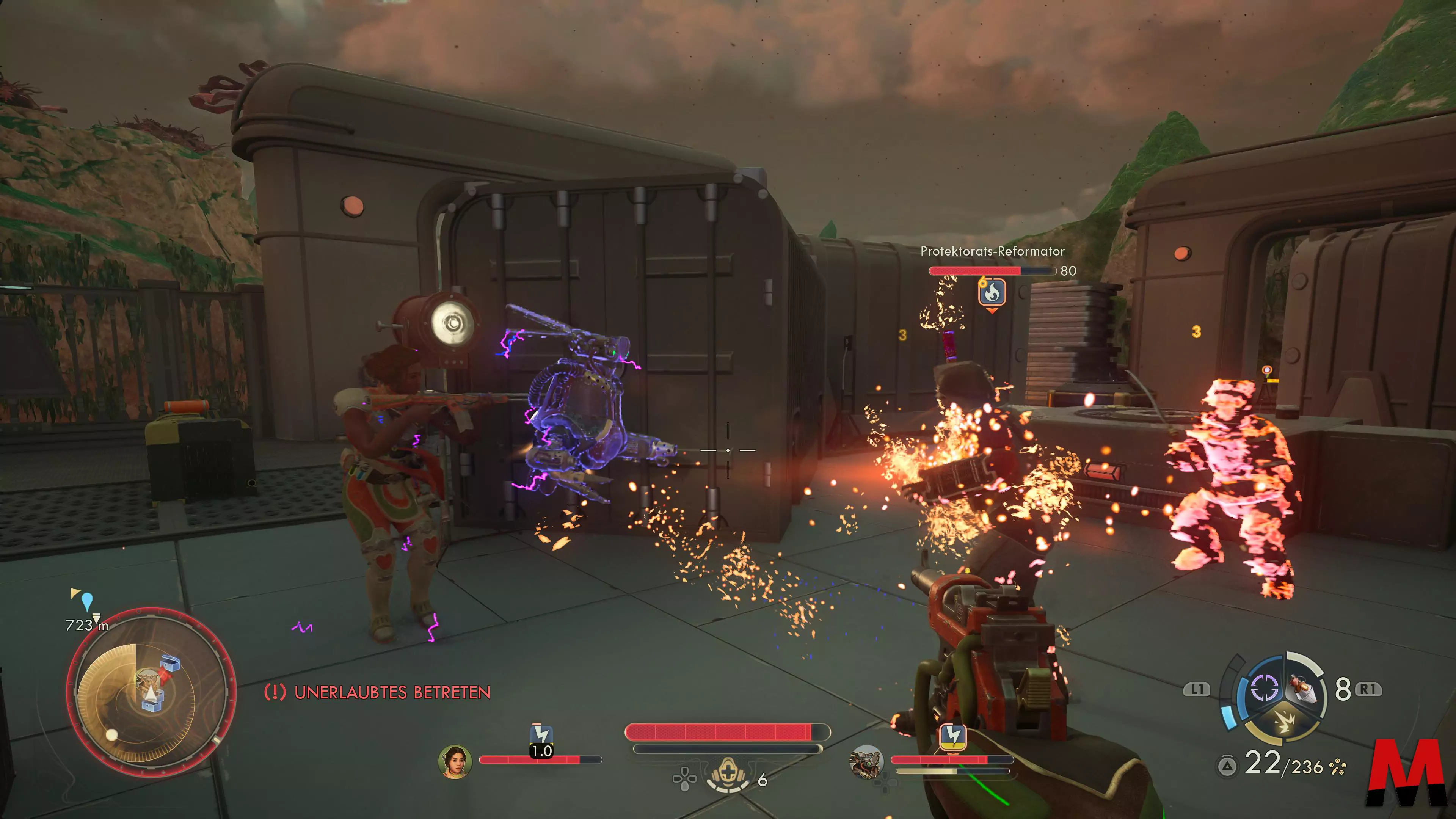 Am grundlegenden Kampfsystem hat sich dagegen wenig geändert. Die breite Auswahl an Nah-, Fern- und Wissenschaftswaffen wurde nochmal ordentlich erweitert und hat ein paar abgefahrene neue Schießprügel im Gepäck, gegen die selbst das Arsenal von Borderlands 4 teilweise konservativ wirkt. Jeder eurer Begleiter verfügt über eine individuelle Spezialfertigkeit, die ihr via einfachem Tastendruck jederzeit aktivieren könnt und sich im Anschluss daran erst wieder aufladen muss. Wie effektiv ihr im Umgang mit den jeweiligen Waffen seid, entscheiden eure Werte. Mit jedem Stufenaufstieg könnt ihr ein paar Punkte in eine große Auswahl an Basistalenten investieren, die euch in bestimmten Abständen mit besonderen Perks belohnen. Dazu gesellt sich eine gesonderte Auswahl zusätzlicher Fähigkeiten, die euch beispielsweise Rabatte verschaffen oder verhindern, dass der Ruf bei einer bestimmten Fraktion unter ein vorgegebenes Minimum sinken kann.